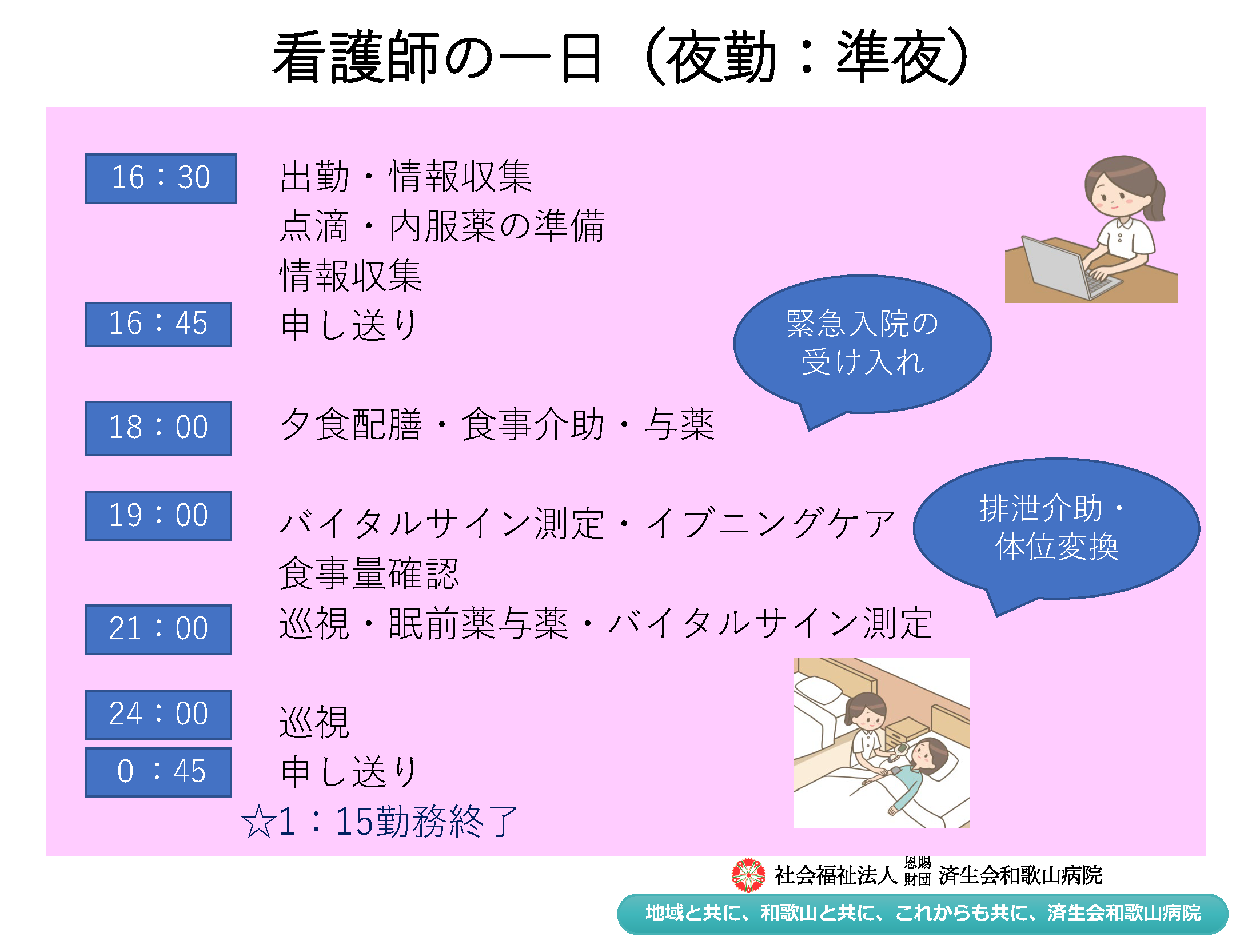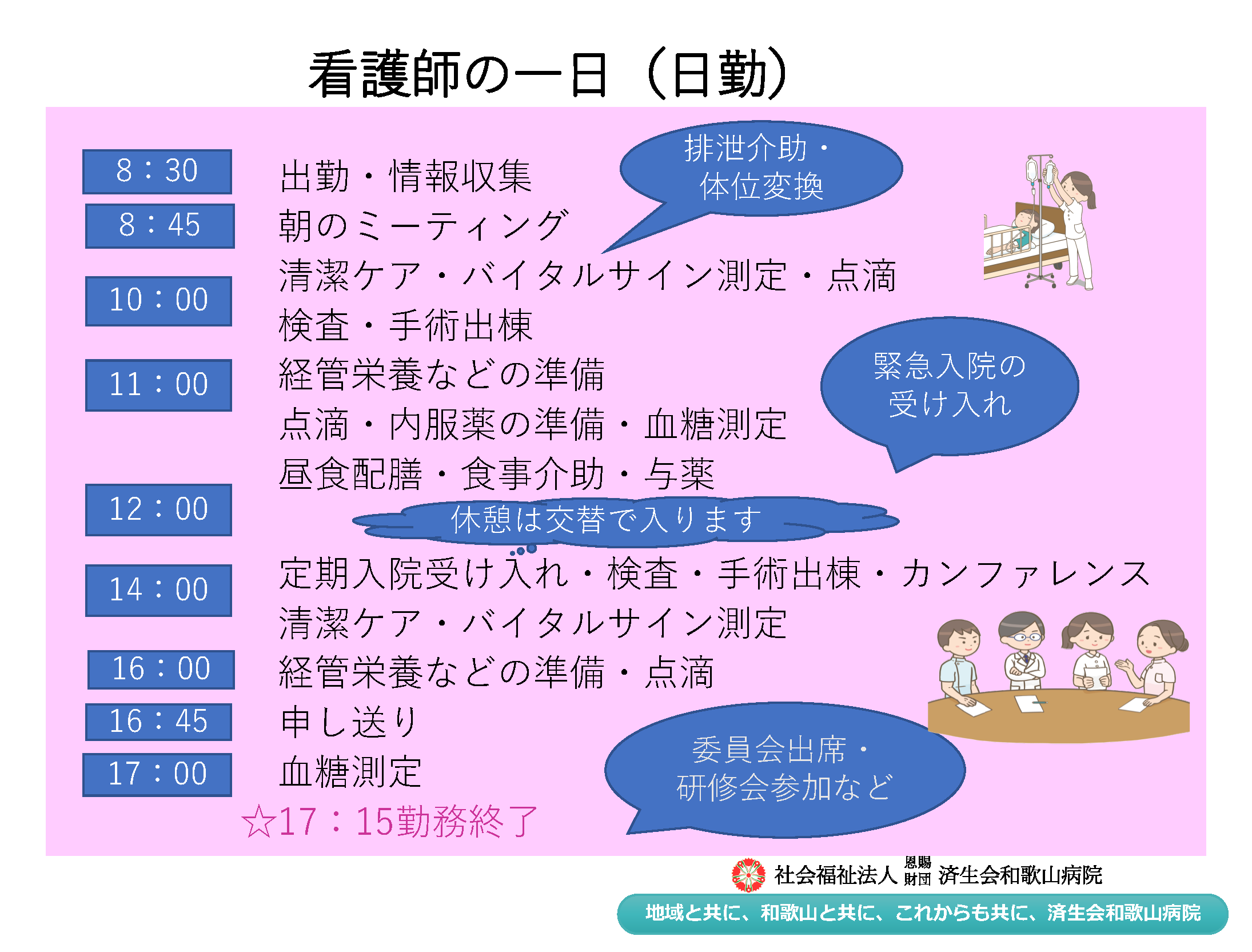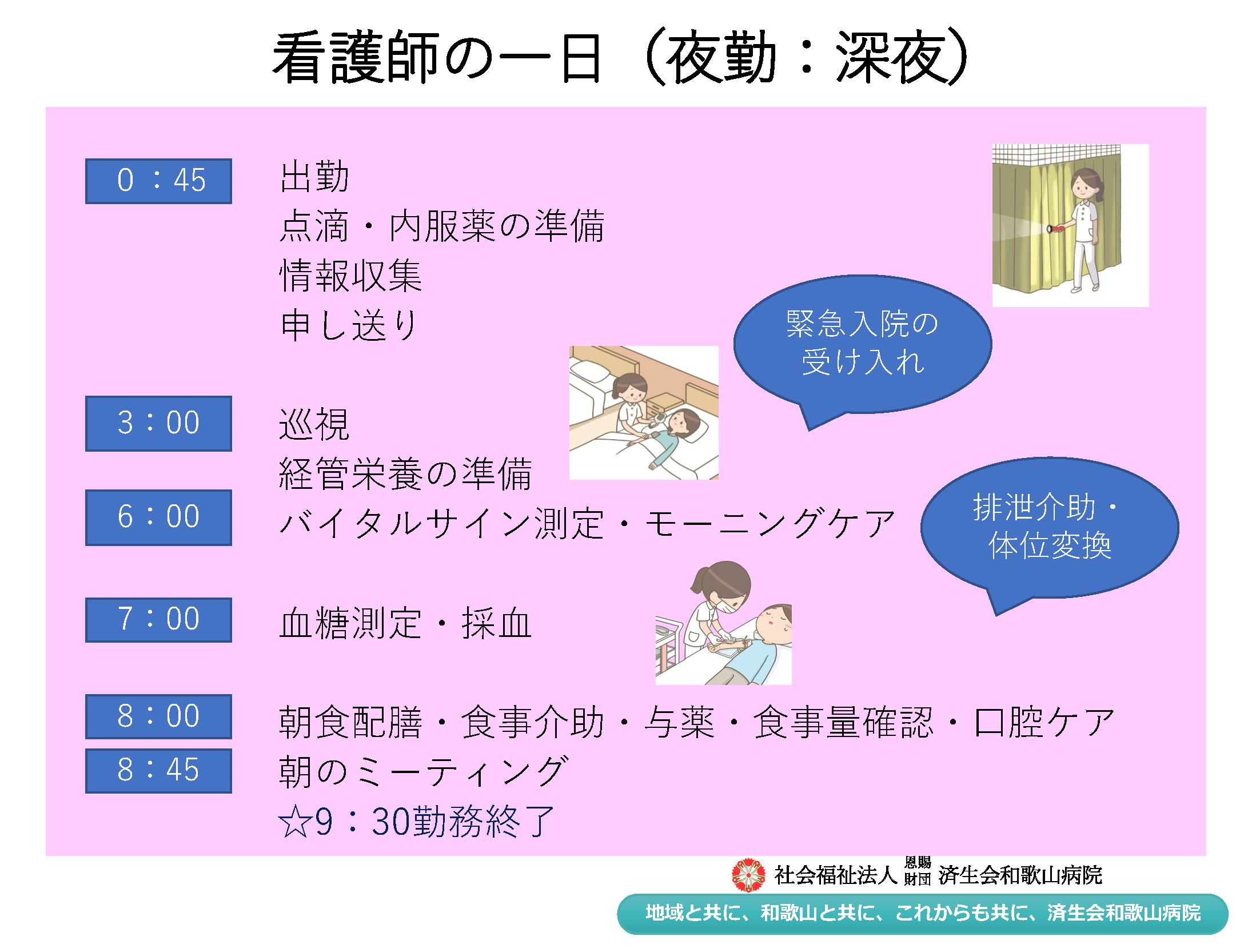 済生会和歌山病院の看護師の1日の流れ