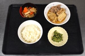 食事は治療の一環であるとともに、入院生活の楽しみのひとつでもあります。患者さんの嗜好や形態に配慮し、安全でおいしい食事を目指し、スタッフ一同、日夜頑張っています。